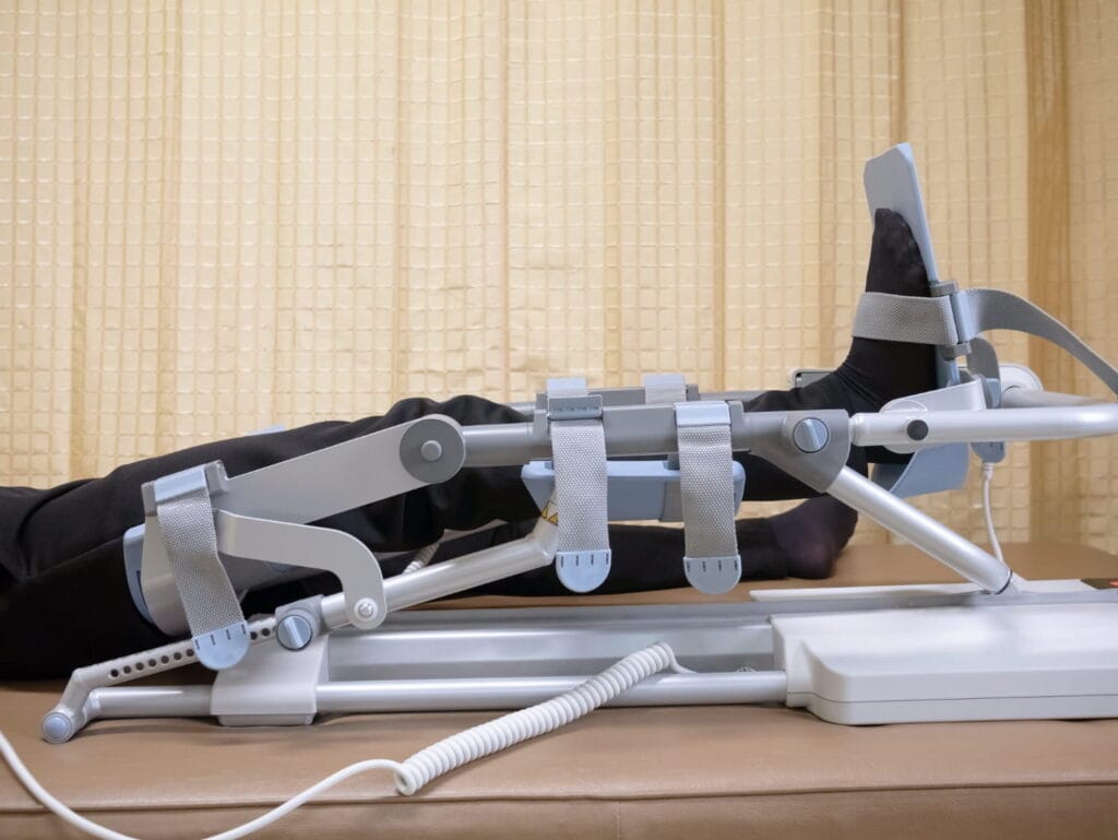Sprzęt kliniczny, parametry dobierane indywidualnie — zakres ruchu i prędkość pracy szyny CPM dostosowujemy do etapu rehabilitacji, rodzaju operacji i aktualnego stanu stawu. Nie ma jednego ustawienia dla wszystkich.