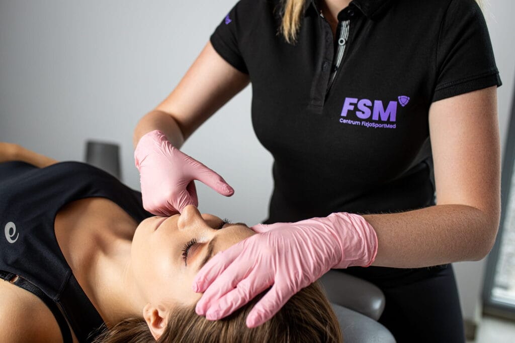 Holistyczne podejście do TMD i bruksizmu. Dysfunkcje stawu skroniowo-żuchwowego rzadko mają jedną przyczynę. Specjaliści FSM łączą terapię manualną z oceną postawy ciała i napięcia mięśni szyi — nocne zgrzytanie zębami często ma źródło w postawie ciała i przeciążeniu mięśni szyi podczas dnia, nie w samej szczęce.